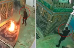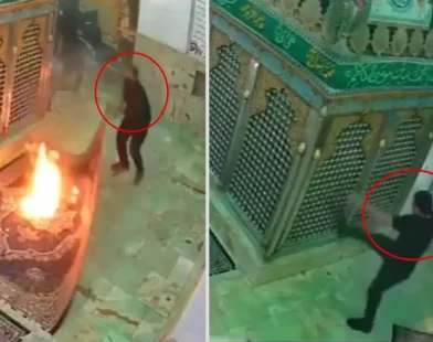 İran’daki protestolarda bazı göstericiler, sosyal medyaya yansıyan görüntülerde türbe/ziyaretgah olarak paylaşılan yapıya girip tahrip etti ve ateşe verdi.