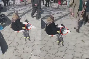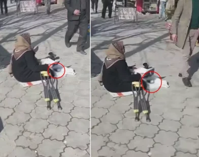 Şanlıurfa'da kaydedilen görüntülerde, dilencilik yapan bir kadının önünde POS cihazı bulunduğu görüldü. O anları cep telefonuyla kaydeden vatandaş,
