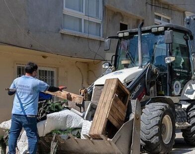 Yenişehir Belediyesi “çöp ev” niteliğindeki meskenden bir kamyon çöp çıkardı