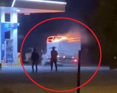 Akaryakıt istasyonunda panik: Alev alan kamyonet benzinliğe girdi