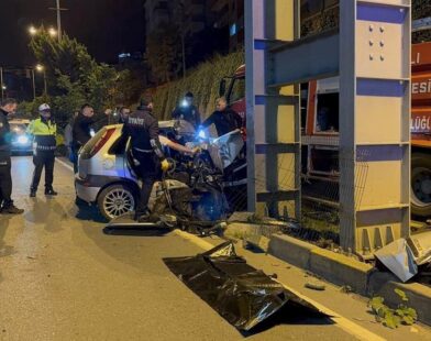 Zonguldak’ta feci kaza: Üst geçidin ayağına çarpan otomobilde iki klişi öldü