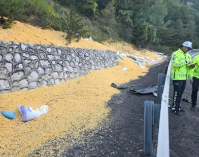 Bursa’da hayvan yemi yüklü TIR devrildi: İki kişi ağır yaralı