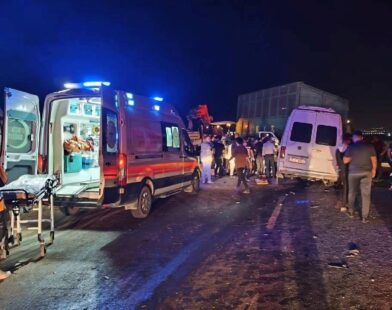 İşçi servisi ile traktör çarpıştı, 14 kişi yaralandı
