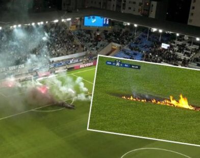 İsveç’te takımları küme düşen taraftalar sahayı yaktı