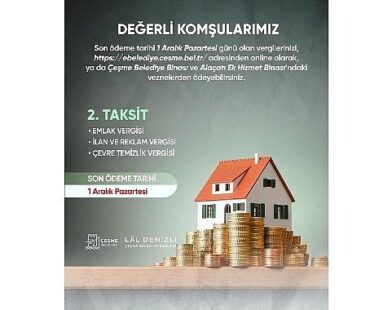 Çeşme Belediyesinden vatandaşlara hatırlatma: Vergi ödemelerinde son gün 1 Aralık Pazartesi
