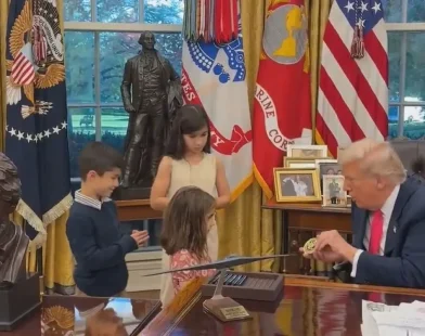 Trump Oval Ofis’te çocuklara cömert hediyeler dağıttı