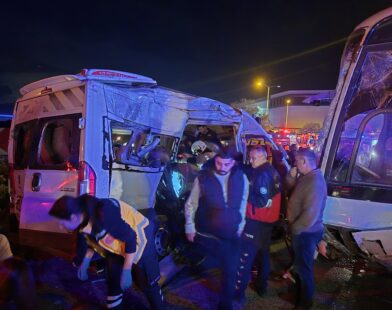 İzmir’de iki işçi servisinin çarpıştığı kazada 13 kişi yaralandı