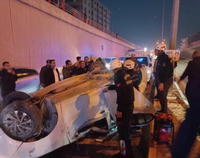 Ters dönen otomobilde baba ve 2 çocuğu yaralandı