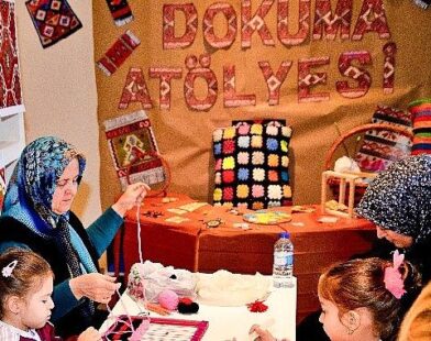 Bornova’da minik eller tezgâh başında