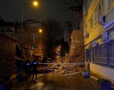 Beyoğlu’nda tarihi metruk binanın duvarı yıkıldı