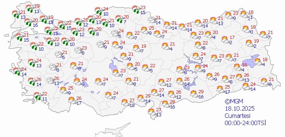 Meteoroloji Genel Müdürlüğü’nün (MGM) bilgilerine nazaran bugün