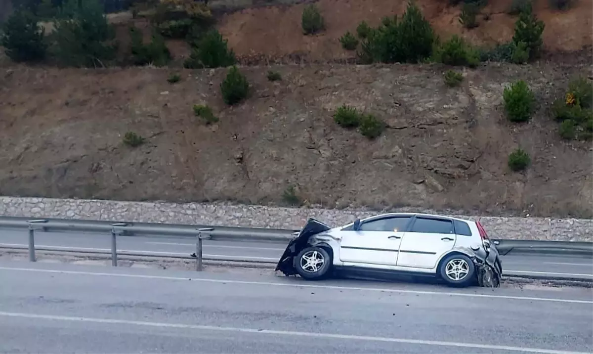 Afyonkarahisar’da orta refüje girip bariyerlere çarpan otomobilde 2 kişi yaralandı.