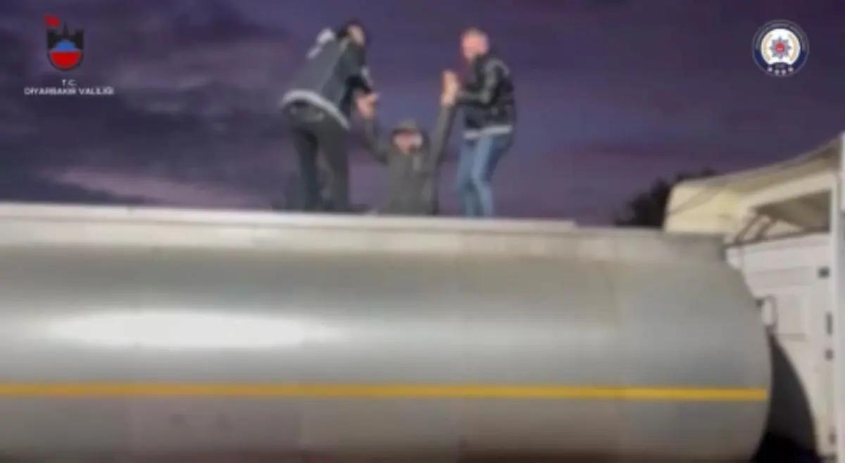 Diyarbakır İl Emniyet Müdürlüğü Göçmen Kaçakçılığıyla Gayret ve Hudut Kapıları Şubesi takımlarınca, göçmen kaçakçılığıyla gayret kapsamında yürütülen çalışmalarda, kuşku üzerine bir çekiciye bağlı atık tankeri durduruldu.