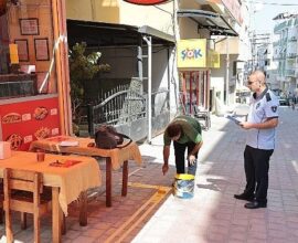 Konak’ta kaldırım işgaline sarı çizgi