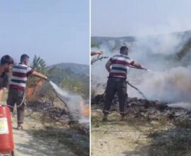Elektrik teli koptu, otluk alan yandı