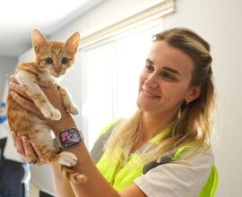 Büyükşehir ekipleri sazlıkların arasına düşen yavru kediye can oldu
