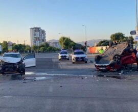 Kavşakta feci kaza: Biri takla attı, diğeri hurda yığınına döndü