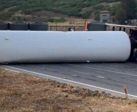Kimyasal gaz yüklü TIR devrildi, Erzincan’da faciadan dönüldü