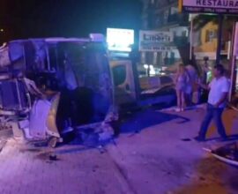 Kuşadası’nda tur midibüsü devrildi: Yaralılar var