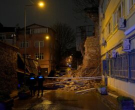 Beyoğlu’nda tarihi metruk binanın duvarı yıkıldı