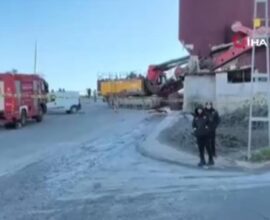 Başakşehir’de yokuştan kayan TIR binaya çarptı