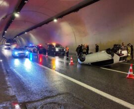 Üsküdar’da kaza. Kayan otomobil tünelde takla attı