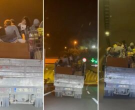 Kamyonet kasasında tehlikeli yolculuk