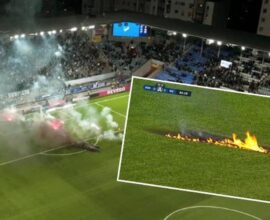 İsveç’te takımları küme düşen taraftalar sahayı yaktı