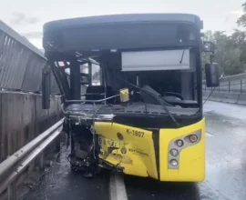 Bariyerlere çarpan otobüsün sürücüsü alkollü