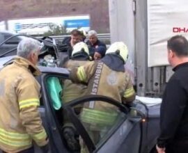 Kuzey Marmara Otoyolu’nda otomobil TIR’ın altında kaldı