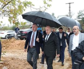 Başkan Büyükakın’dan sağanak yağış altında denetim