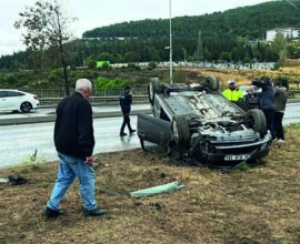 Yağmur Kazaya Neden Oldu: Araç Ters Döndü