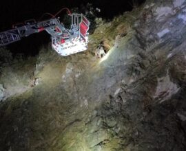 Uçurumun ortasında mahsur kalan köpeğe itfaiye yetişti