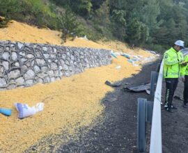 Bursa’da hayvan yemi yüklü TIR devrildi: İki kişi ağır yaralı