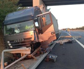 TEM’de feci kaza: TIR ok gibi saplandı, sürücü ağır yaralı