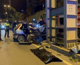 Zonguldak’ta feci kaza: Üst geçidin ayağına çarpan otomobilde iki kişi öldü