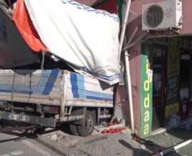 Üsküdar’da kaza: Kamyonet iş yerine girdi