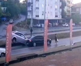 El frenini çekmeyi unuttu, araç 100 metre boyunca kaydı
