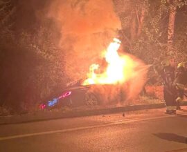 Kaza yapan otomobil alev alev yandı