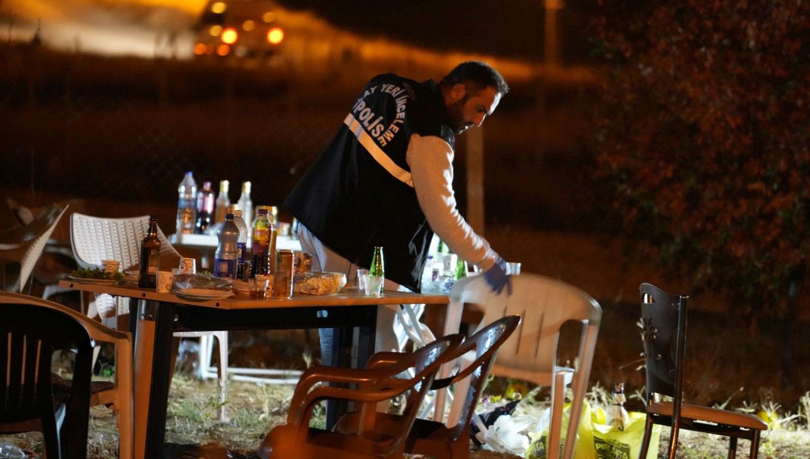 Ekipler, olay yerinde bulunan jandarma işçisi Y.E.Ç.’nin ateş ettiği tabancayı poşete gizlemeye çalıştığını tespit etti. Bu sırada bahçede bulunan şüphelilerle polis ortasında arbede yaşandı.