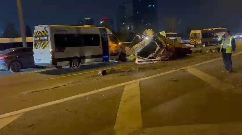 İstanbul Bağcılar, TEM Otoyolu’nda hafriyat kamyonu, kamyonet ve servis minibüsünün karıştığı zincirleme kaza meydana geldi.