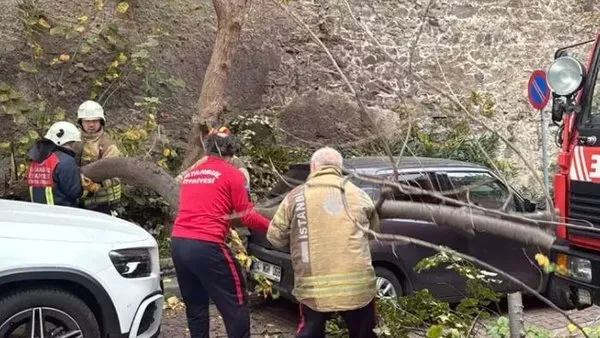 Beşiktaş Yıldız Mahallesi’nde rüzgarın şiddetiyle kökünden kırılan bir ağaç, park halindeki bir cipin üstüne devrildi. Olay sonucu aracın ön camında ciddi hasar meydana geldi. Olay yerine kısa sürede intikal eden itfaiye ekipleri, ağacı testereyle parçalayıp kaldırarak caddeyi tekrar trafiğe açtı.