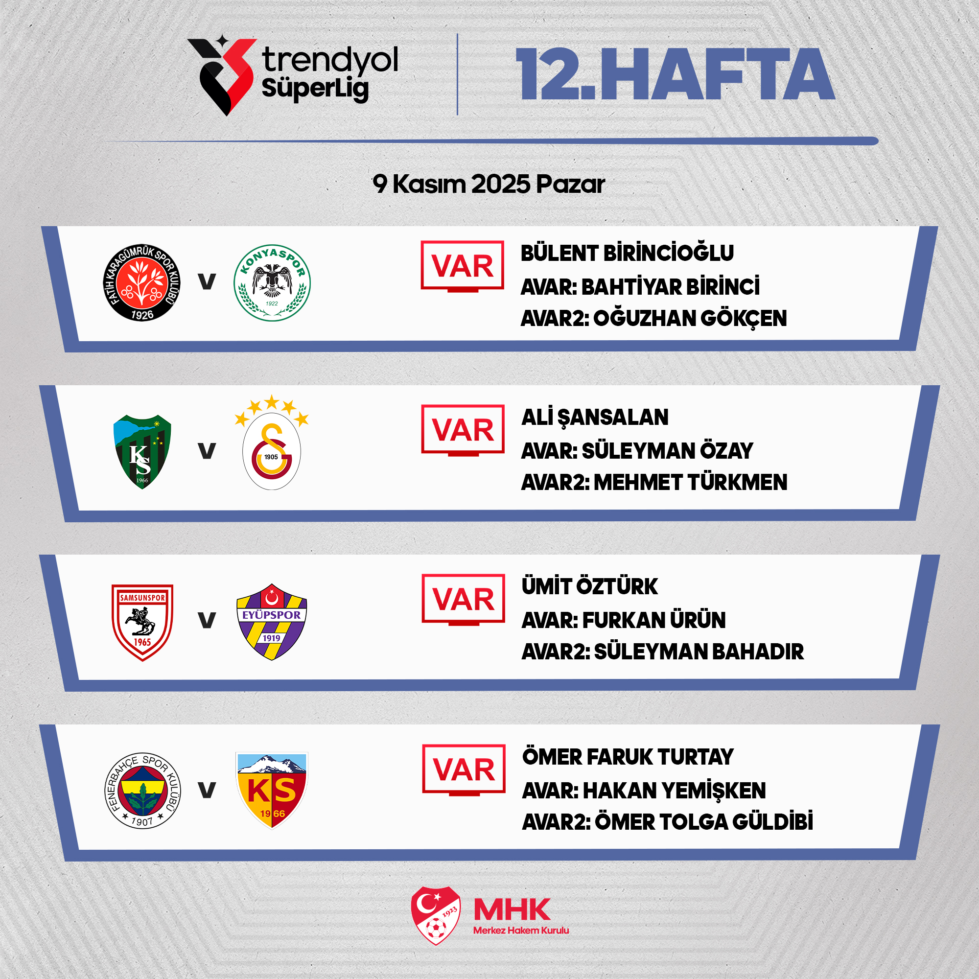Kocaelispor – Galatasaray maçının VAR hakemi Ali Şansalan oldu. AVAR da ise Süleyman Özay ile Mehmet Türkmen misyon yapacak.