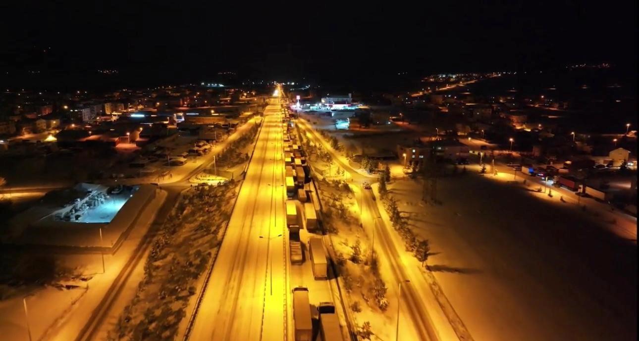 Çankırı’nın Çerkeş ilçesinde, İstanbul’u Karadeniz’e bağlayan D-100 karayolu, ağır kar yağışı ve buzlanma sebebiyle ulaşıma kapandı.
