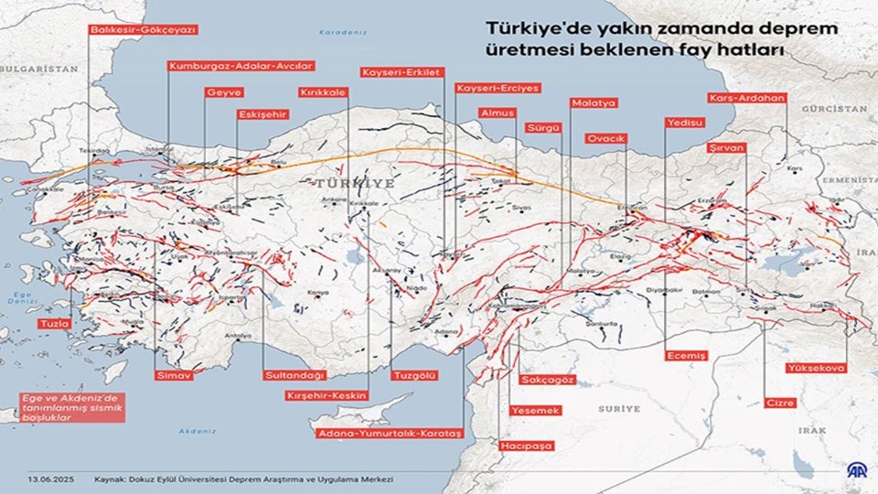 Türkiye’de yakın vakitte zelzele üretmesi beklenen fay çizgileri.
