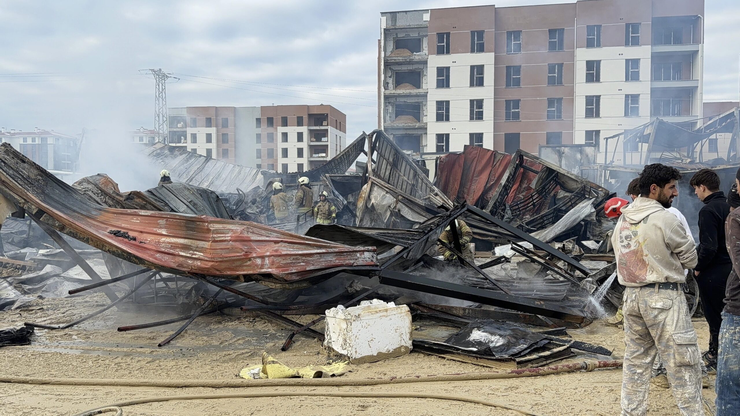 Arnavutköy’ün Hacımaşlı Mahallesi’nde bulunan toplu konut şantiyesinde personellerin konakladığı konteynerlerden birinde elektrikli sobadan kaynaklandığı düşünülen yangın çıktı.