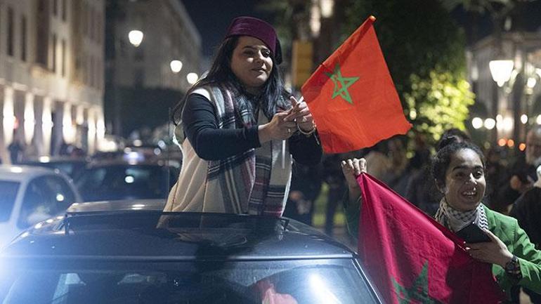Fas’ın galibiyeti sonrası, başşehir Rabat’ta sokaklara çıkan vatandaşlar sevinç şovlarında bulundu.