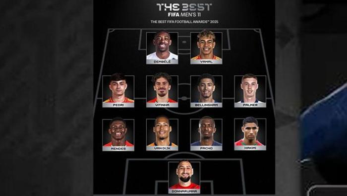 İşte yılın açıklanan 11’i; Gianluigi Donnarumma, Achraf Hakimi, Pacho Willian, Virgil Van Dijk, Nuno Mendes, Cole Palmer, Jude Bellingham, Vitinha, Pedri, Lamine Yamal, Ousmane Dembele