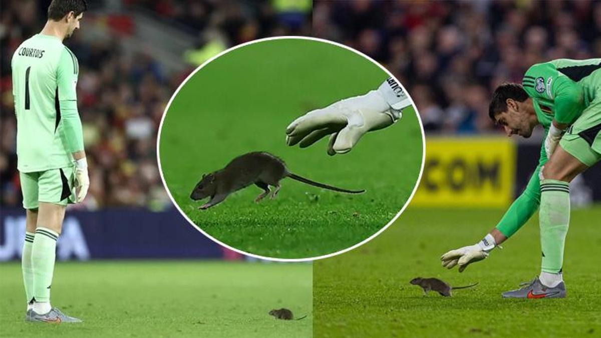 Galler-Belçika maçında sahaya fare girdi, ortalık karıştı! Courtois’nın zor anları