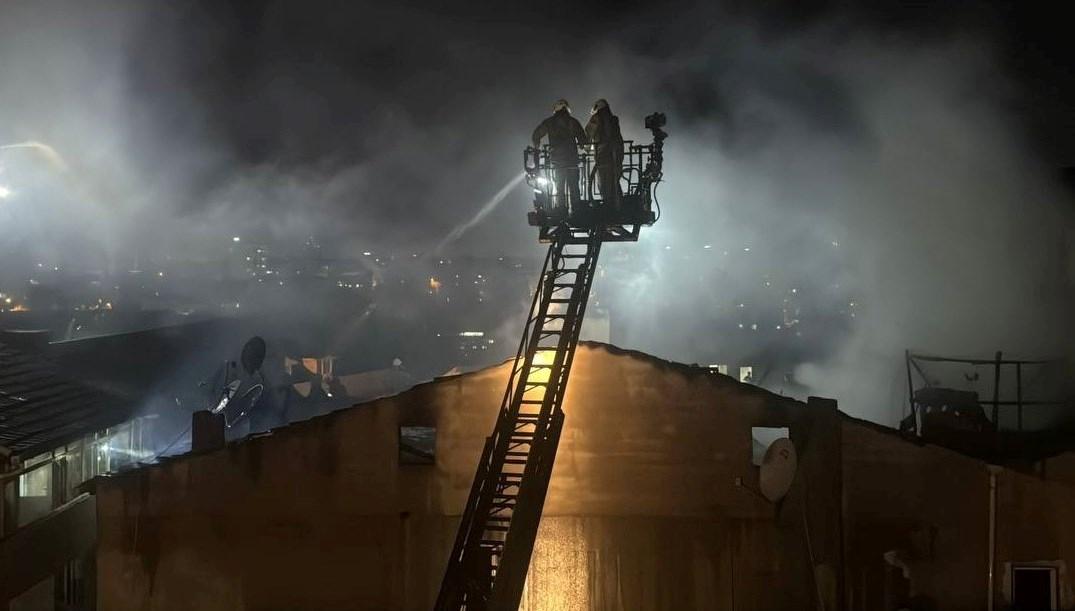 Alevler bitişikteki iki binanın çatısına sıçradı.